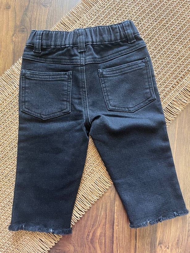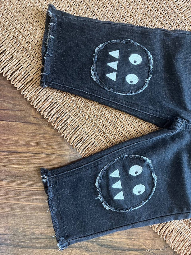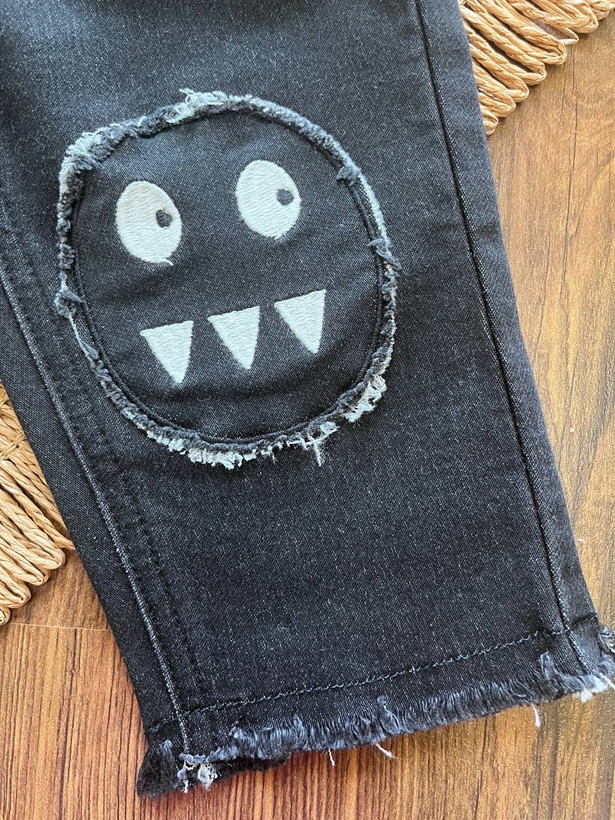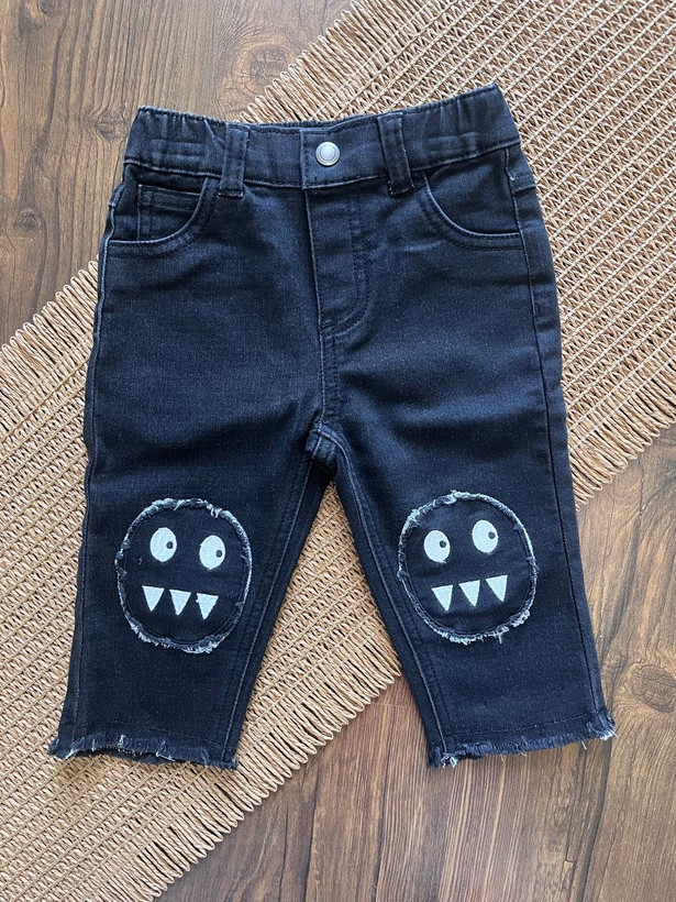 شلوار جین پسرانه طرح خاص ایموجی،رنگ زغالی، بسیار شیک و زیبا، مناسب سن ۶ تا ۹ ماه