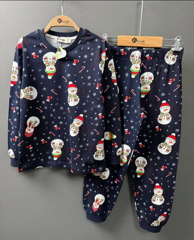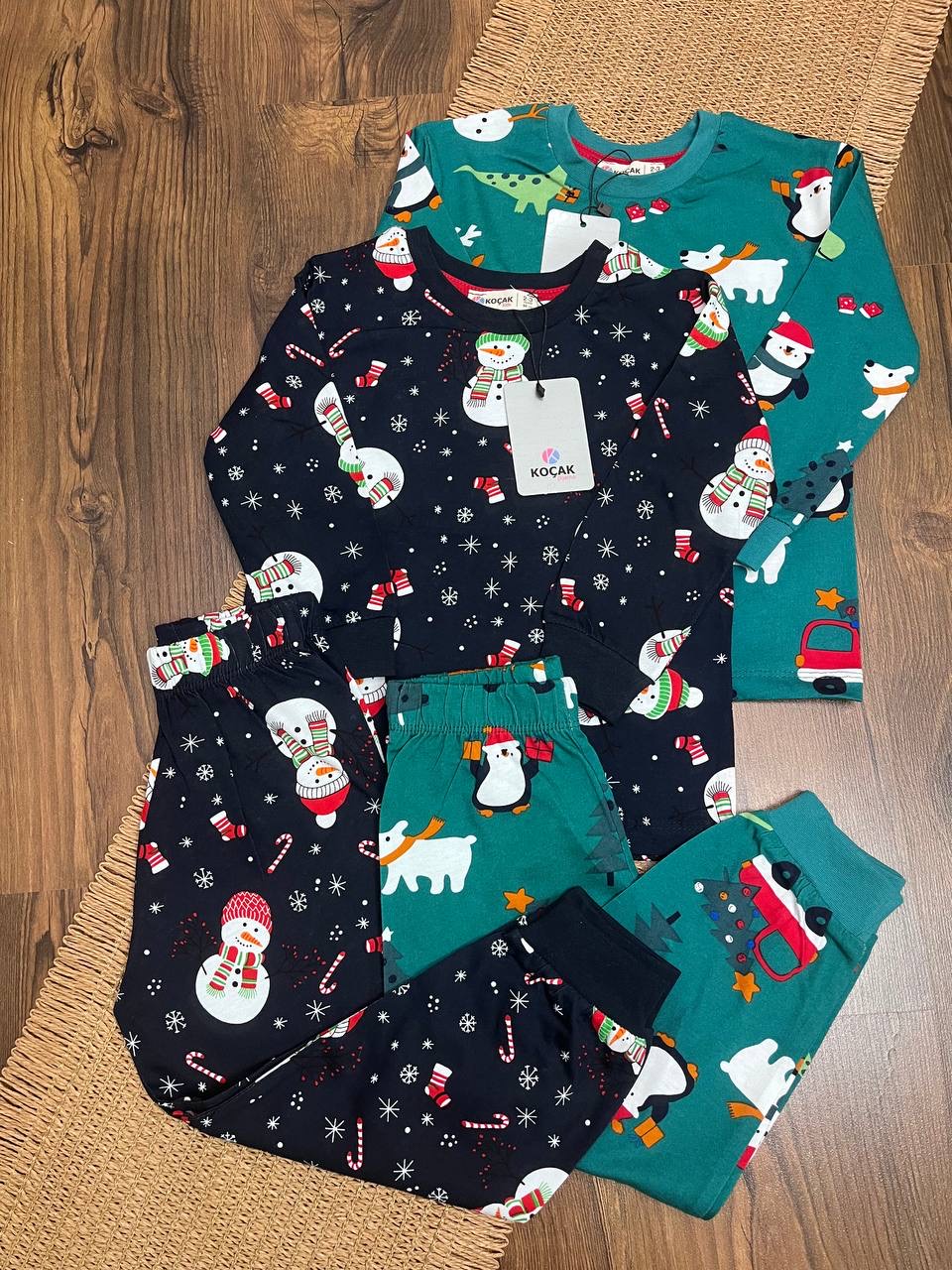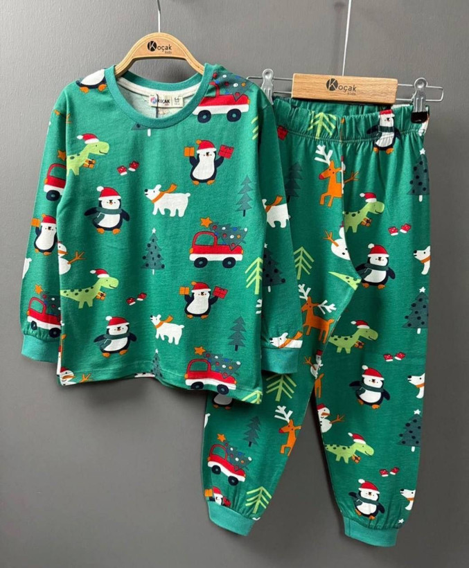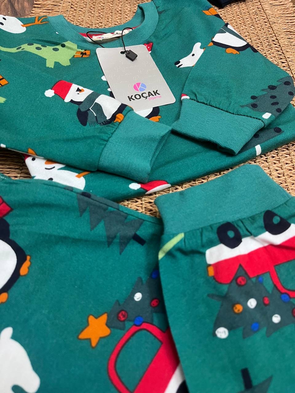 ست بلوز شلوار برند کوچاک Cocak , ترک در دو رنگ سبز و سرمه ای با طرح کریسمس،جنس نخ پنیه اعلا، ضد حساسیت،مناسب فصل بهار ، پاییز و تابستان