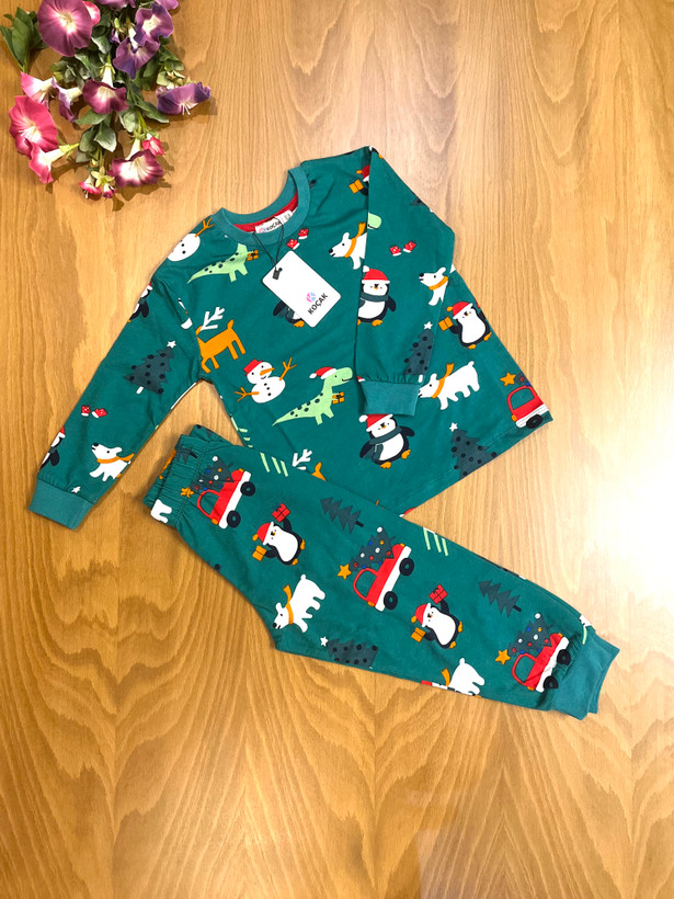 ست بلوز شلوار برند کوچاک Cocak , ترک در دو رنگ سبز و سرمه ای با طرح کریسمس،جنس نخ پنیه اعلا، ضد حساسیت،مناسب فصل بهار ، پاییز و تابستان