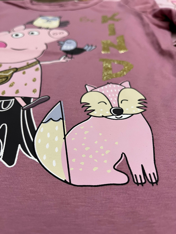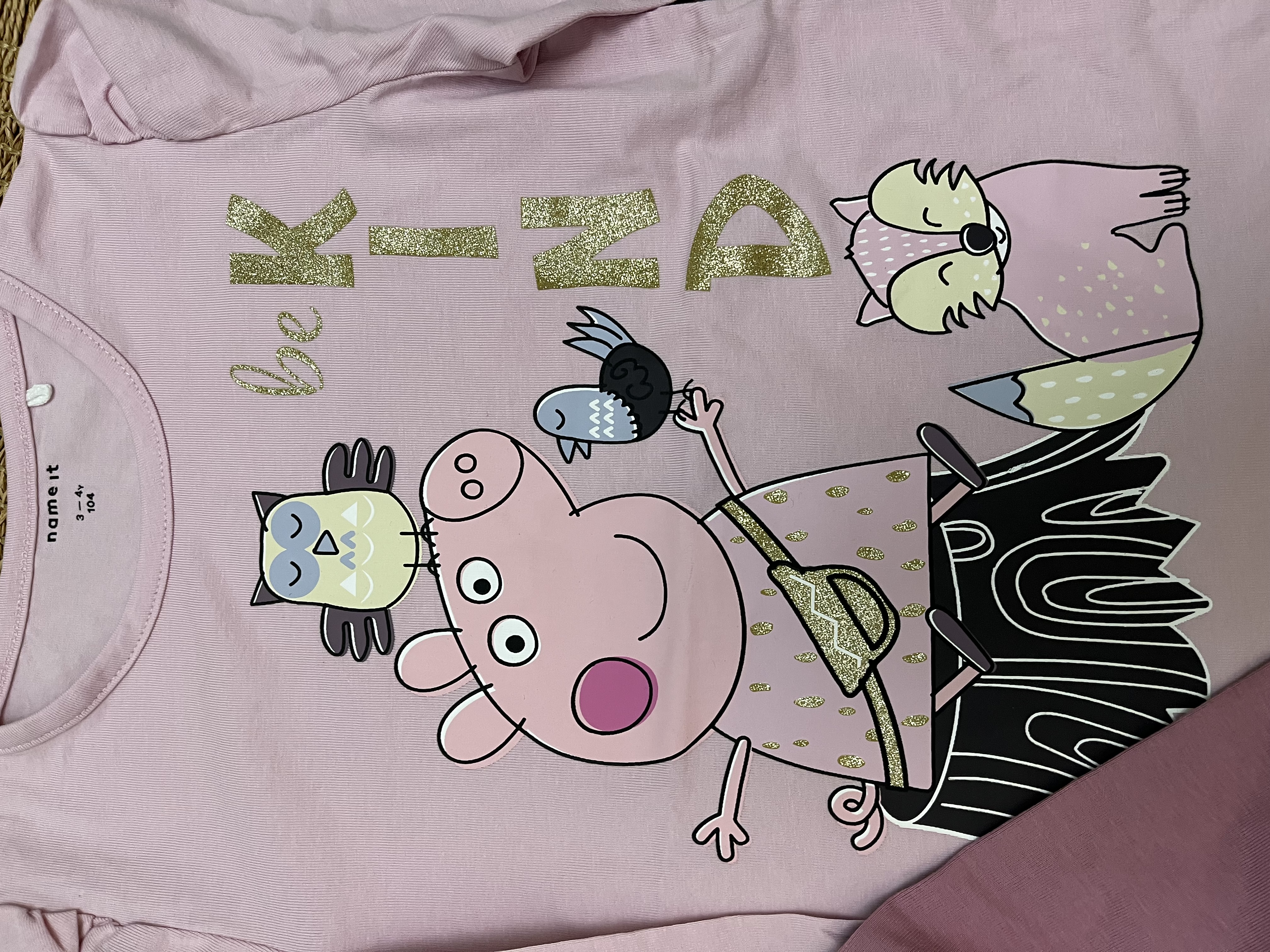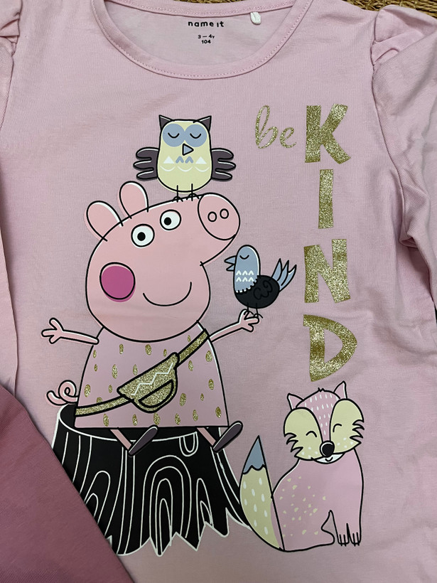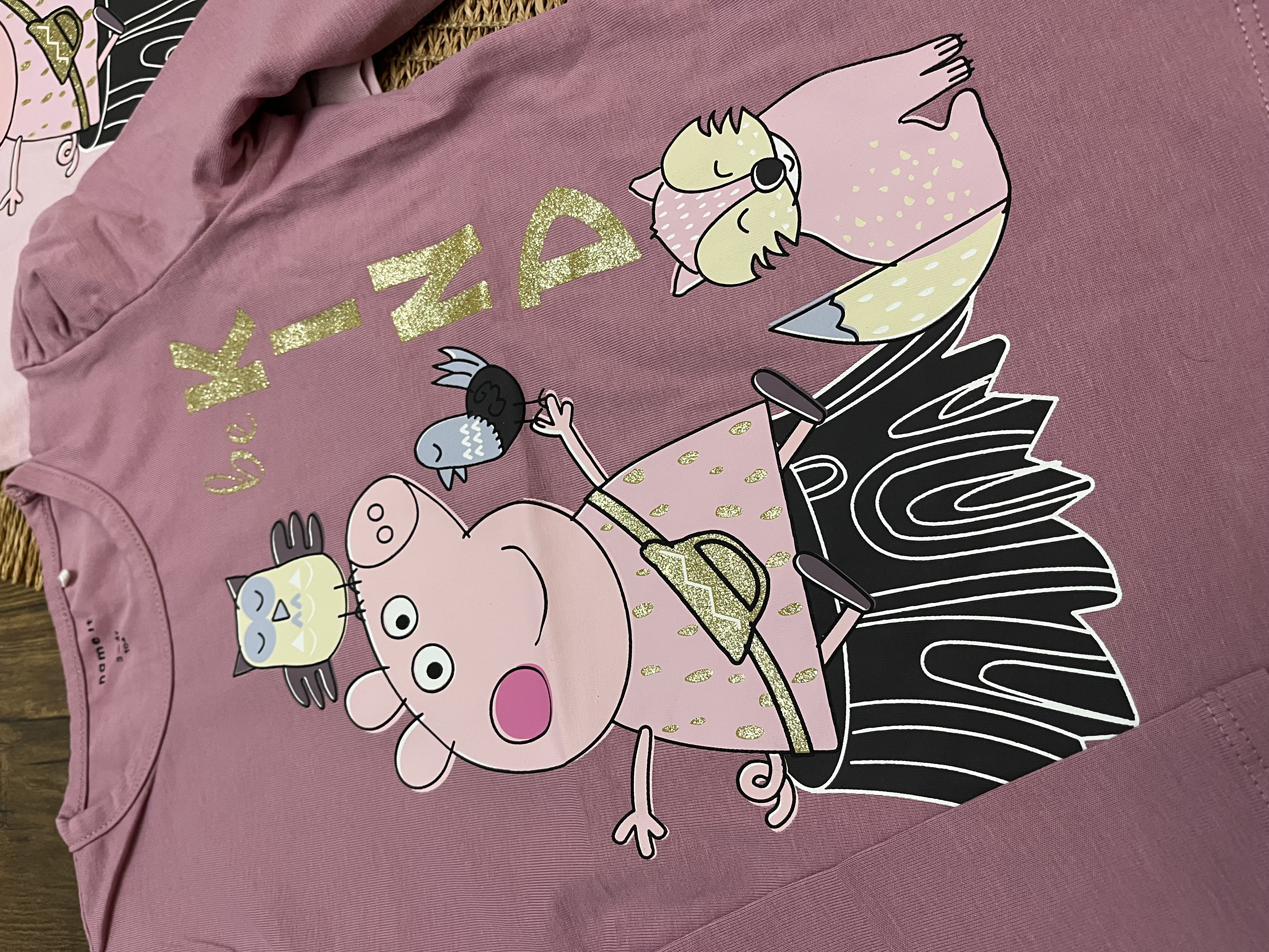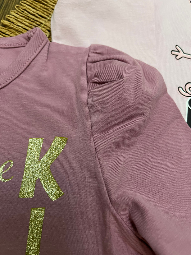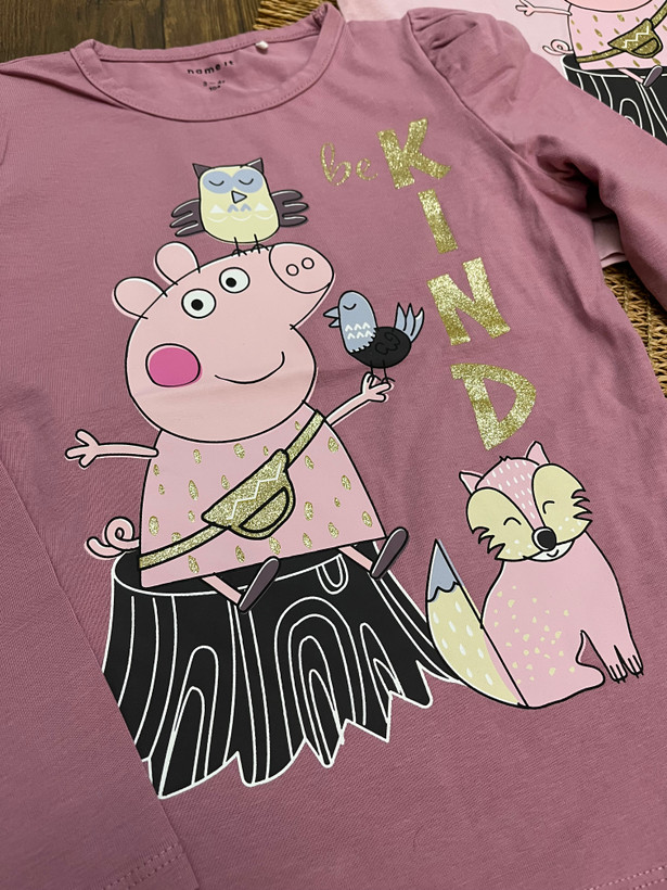 بلوز دخترانه پپاپیگ، برند ترک Name it، در دورنگ صورتی و گلبهی تيره، با چينهاي ظريف سرشانه، تن خور و ايستايي زیبا، دوخت و کیفیت پارچه عالي