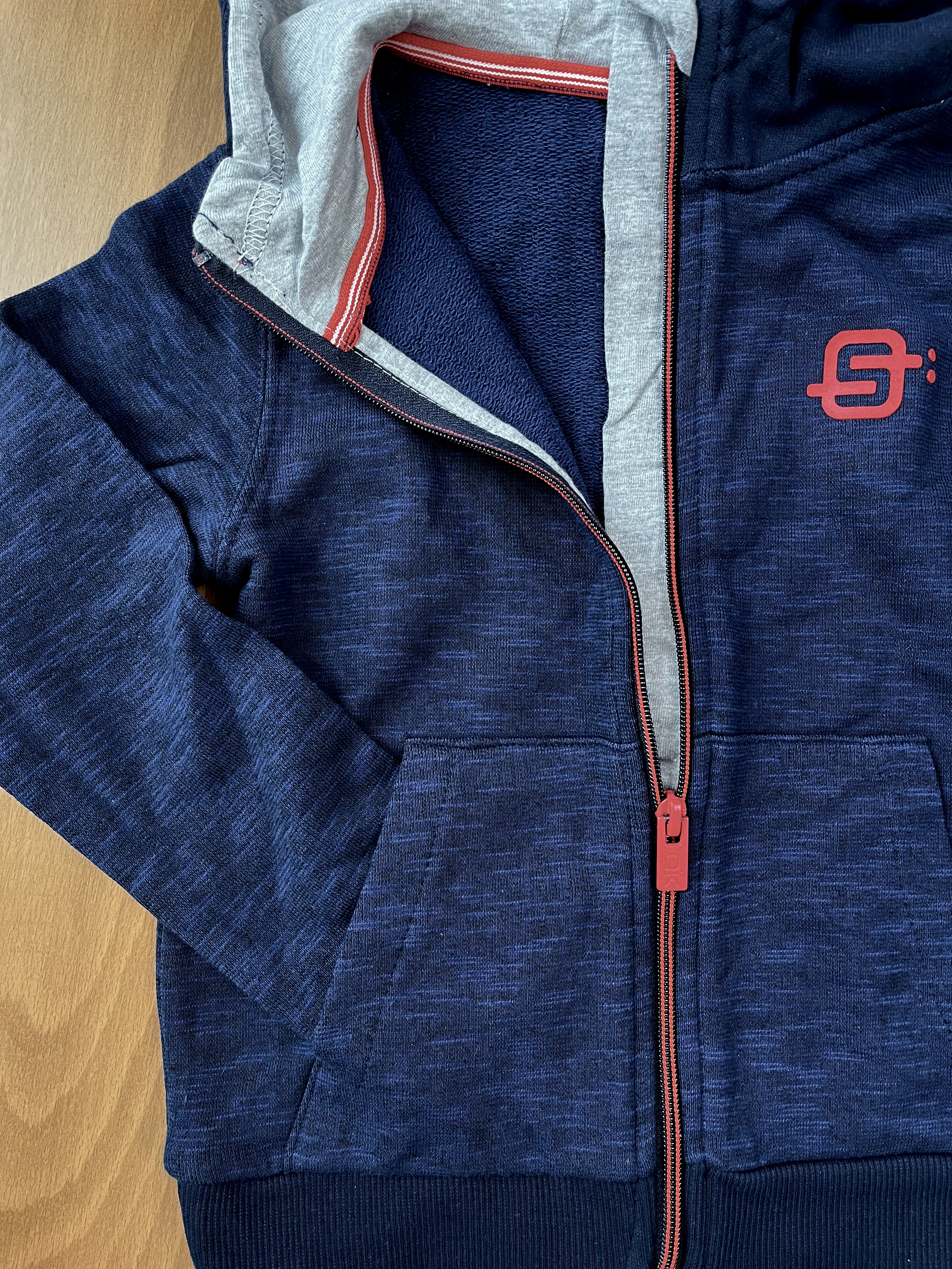سوییشرت پسرانه سورمه ای از برند okaidi, جنس دورس ضخیم، دارای جیب بغل، کلاه آستر دار، کیفیت عالی اندازه ها به سانتی متر می باشد. ۵سال: پهنا: ۳۴ بلندی: ۴۱ آستین: ۳۹