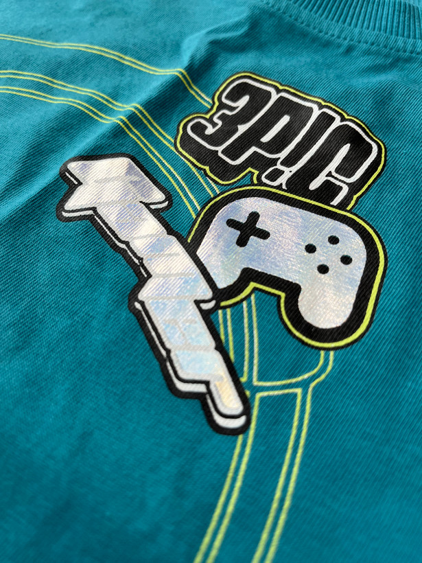 تیشرت آبی رنگ از برند جورج با طرح های هولوگرامی: