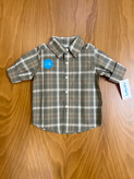پیراهن نوزادی پسرانه، چهارخانه زیتونی، نخ پنبه از برند محبوب کارترز